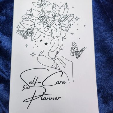 This 6X9 self-care planner begins with a goals page and 30-day challenge. It has blank pages for "plans for today" and weekly self-care.